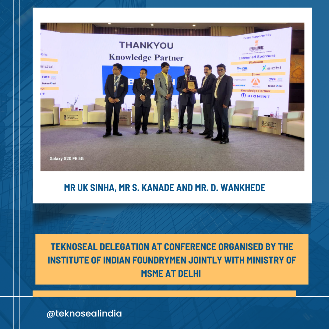 The Teknoseal delegation of Mr UK Sinha, Mr S. Kanade and Mr. D. Wankhede attended the seminar organized by The Institute of Indian Foundrymen jointly with Ministry of MSME at Delhi on the 25th of July. They explained to the dignitaries present on the dais about how Teknoseals products and processes could solve their casting leakage challenges, and make their castings leak proof and efficient, while also saving costs. Leaflets with information about Teknoseal were shared with participants and business cards were exchanged.